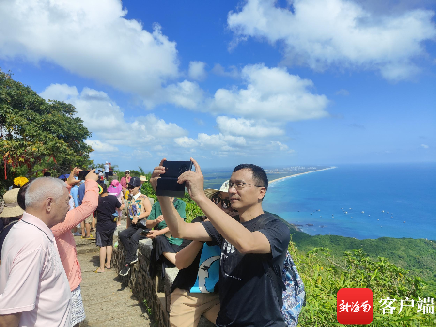 10月3日國慶假期第三天,陽光明媚,天高云淡,恰是登山賞景的好時節。文昌銅鼓嶺景區來人往,游客紛至沓來,盡賞山海美景。來自廣東的游客吳先生表示:“我來文昌2天了,文昌真是個好地方,風景好,吃的東西也好,銅鼓嶺山海美景惹人醉,文昌很棒。”
