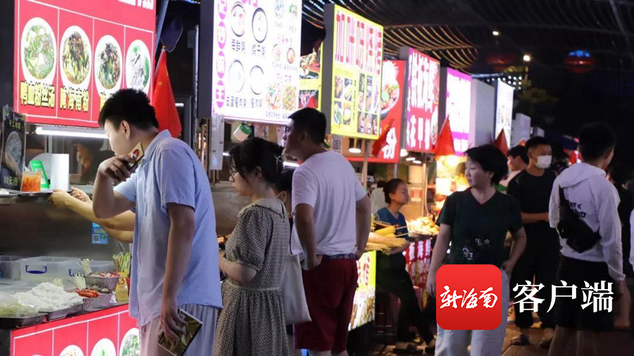?夜幕降臨,市民游客在夜市偶遇美食。海口旅文局供圖