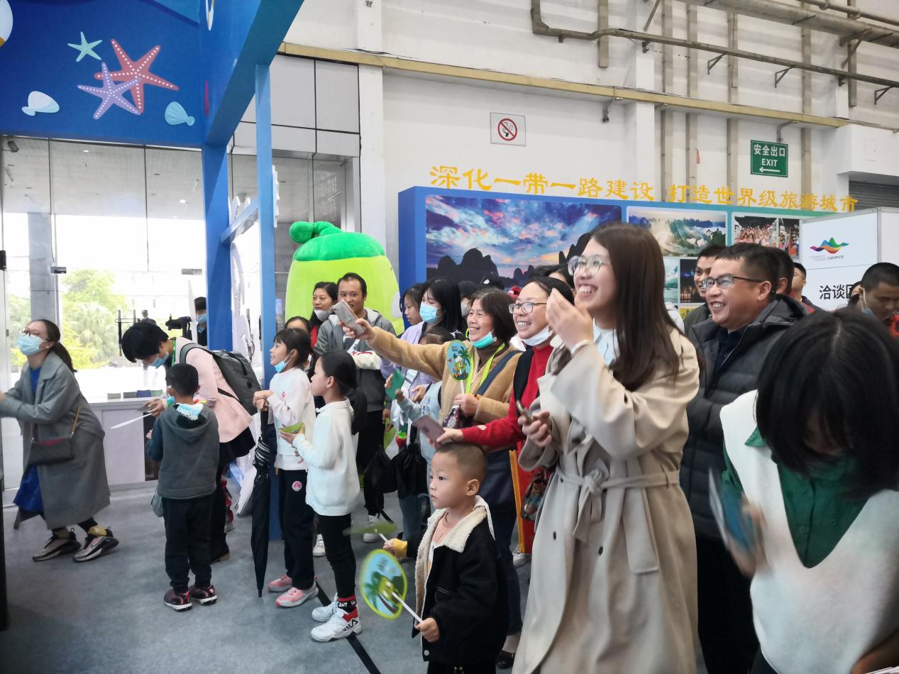 展會上,海南旅游動漫形象“波波椰”與觀展者積極互動,還有“手機搖一搖”互動小游戲、海南知識問答、幸運轉盤抽獎等豐富多彩的互動體驗活動,全方位展現了海南的熱情與活力。