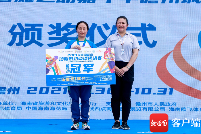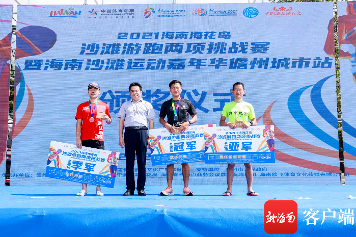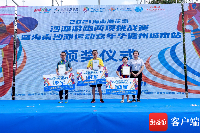 2021海南?;◢u沙灘游跑兩項(xiàng)挑戰(zhàn)賽頒獎(jiǎng)儀式現(xiàn)場。記者 李昊 攝