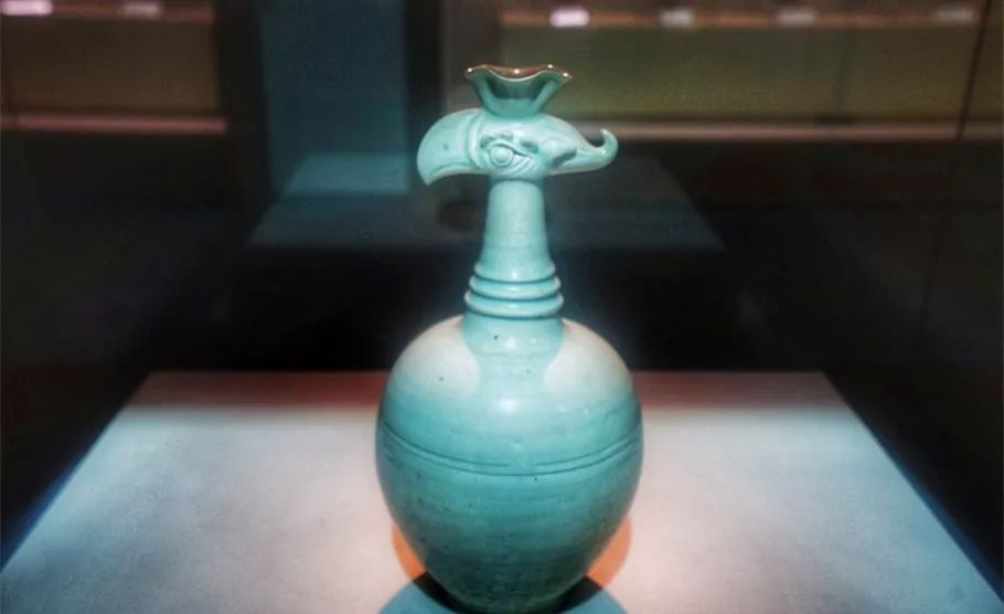 青白釉花口鳳首壺