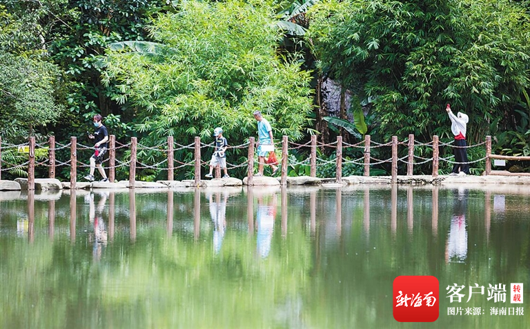 游客在瓊中百花嶺熱帶雨林文化旅游區(qū)游玩。方山 攝