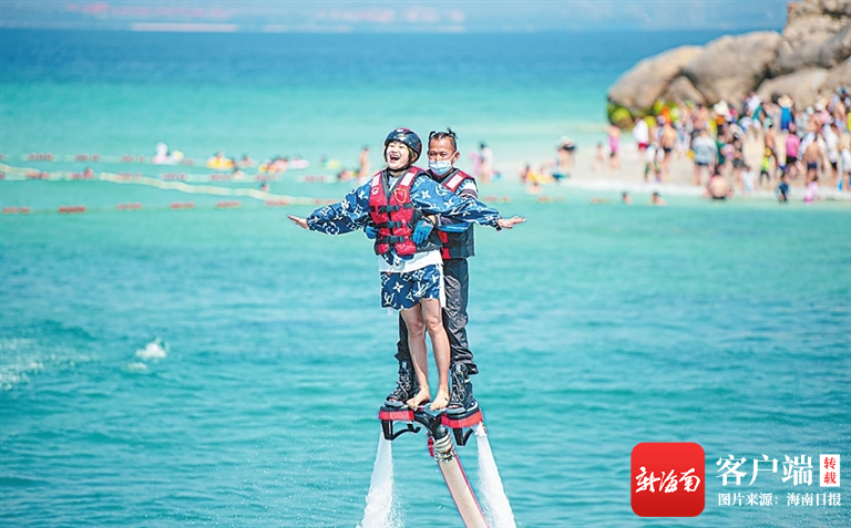 游客在蜈支洲島景區(qū)體驗水上項目。阮琛 攝