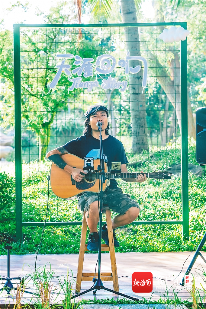 除了不定期音樂(lè)會(huì)形式外,海南一些景區(qū)嘗試將音樂(lè)元素融入日常中。在天涯海角游覽區(qū)文創(chuàng)商店前的大樹(shù)下,一把高腳椅、一把吉他,音樂(lè)人管今深情演唱,吸引不少游客駐足聆聽(tīng)。