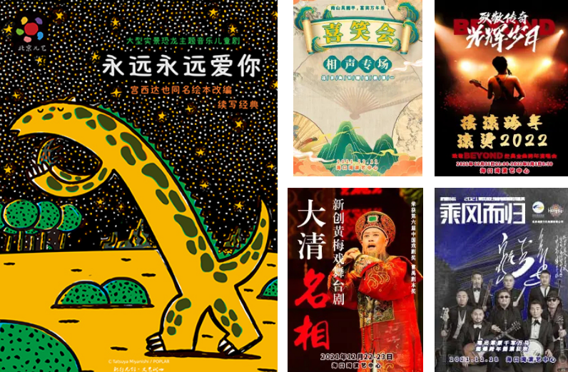 接連上演大型音樂詩劇《血沃中華》、“精彩中華”全國青少年藝術素質展演、浪漫舞劇《初戀》、《歌從草原來》內蒙古經典作品音樂會、南山風雨平,喜笑萬年長北京喜笑會巡演海口站、話劇《家有九鳳》、《燃情樂話》超燃電影音樂視聽音樂會、兒童劇《永遠永遠愛你》、自然物語音樂會《春分夏至》、聆聽合唱團音樂會、兒童劇《花木蘭》、杭蓋2021乘風而歸全國巡演、“海納百川 大愛無疆”—張鶴和她的朋友們新年交響音樂會、龍華區第八屆免費開放培訓成果匯報演出、第四屆“金色夕陽”文化藝術節系列活動等精彩節目。