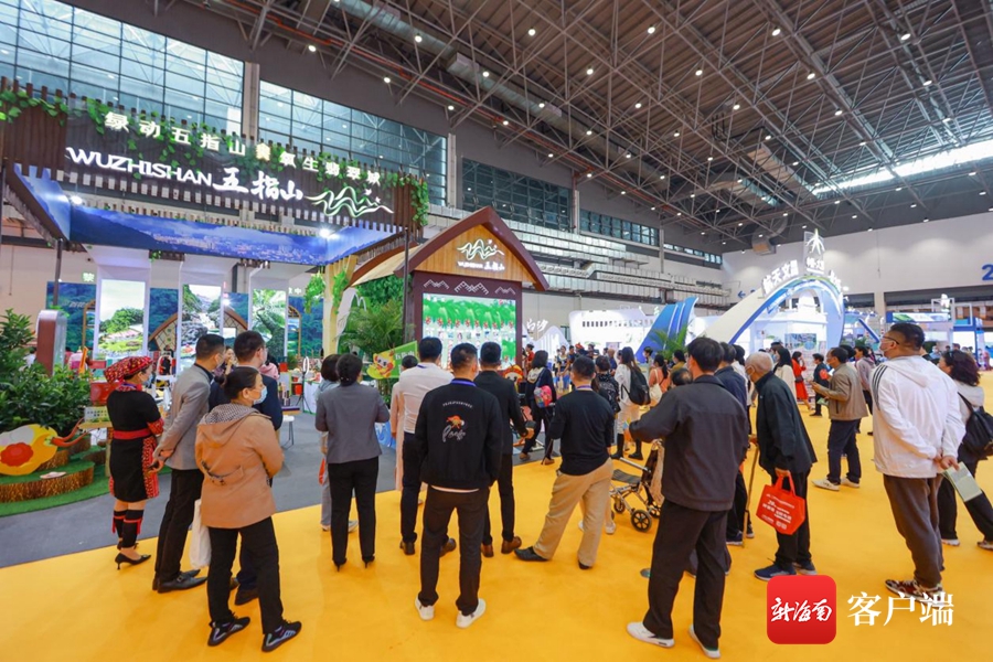 休博會期間,現場人聲鼎沸,精彩不斷。??谡刮惶卦O騎樓展陳,推介海口旅游;三亞、文昌展位結合海洋、航天等設計,科技感十足;樂東,保亭、五指山等展位加入了自然元素,生意盎然,進入展區仿佛身處海南熱帶雨林,感受黎家苗寨風情。