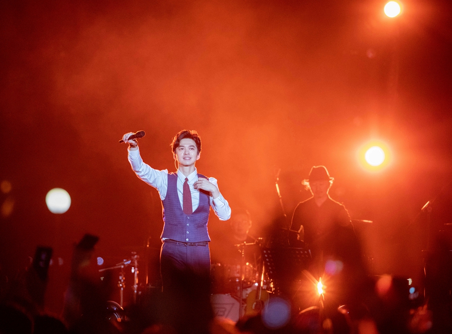 黃昏時分的世紀大橋下,世紀公園海口灣的金色天空成為絕佳舞臺布景,李健音樂會在令人驚嘆的畫面中開場。從《深海之尋》《心升明月》到《風吹麥浪》等,李健用清亮悠揚的聲音共演繹了14首不同時期的歌曲,將一個個光陰故事娓娓道來。演出中,李健還不乏風趣幽默的互動交流,讓現場觀眾在感動與微笑里,完成了一次新年伊始最美好的視聽體驗。