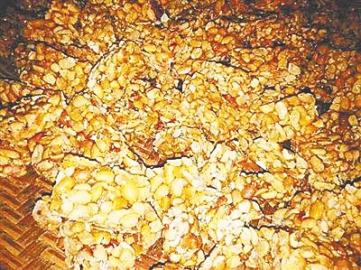 定安縣下田村八旬老人徐家昌回憶,村里有條件的人家常在臘月二十七、二十八開(kāi)始做“筐粑”,也就是人們常說(shuō)的年糕。“筐粑”的做法,一般是用浸過(guò)的糯米(有的加少量的粳米)加水磨成漿,濾去多余水分,捏成小圓條,放入大鍋中,加適量紅糖或白糖和清水,煮熟時(shí)用兩根木棍伸進(jìn)鍋內(nèi)攪拌均勻。待熟透成膠糊狀,倒進(jìn)扁形竹筐內(nèi),放涼后可用白線切割,鄰里間相互贈(zèng)送。“‘筐粑’放置幾天會(huì)逐漸干硬,還可切成薄塊油煎后吃。”徐家昌說(shuō)。