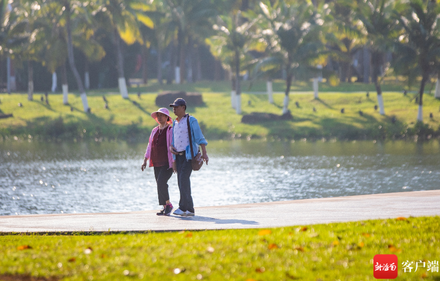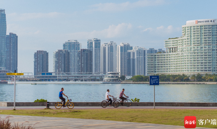 初春的海口灣,人們騎行呼吸著新鮮空氣。
