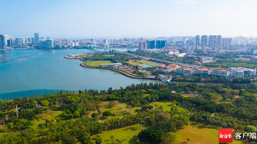 初春的海口灣,俯瞰云洞圖書館與城市天際線。