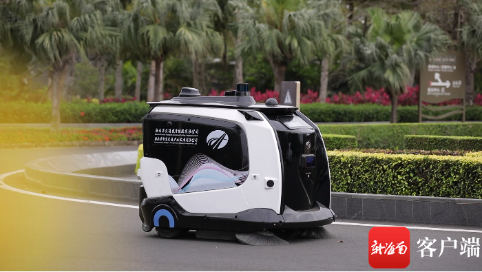 在博鰲東嶼島試運營的自動駕駛清掃車。記者 任桐攝