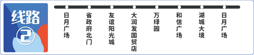 經停站點:日月廣場、省政府北門、友誼陽光城、大潤發國貿店、萬綠園、和信廣場、湖城大境、日月廣場