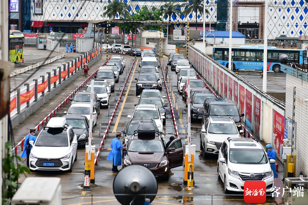 4月30日,海口秀英港,排隊準備出島的小汽車。記者 陳衛東攝