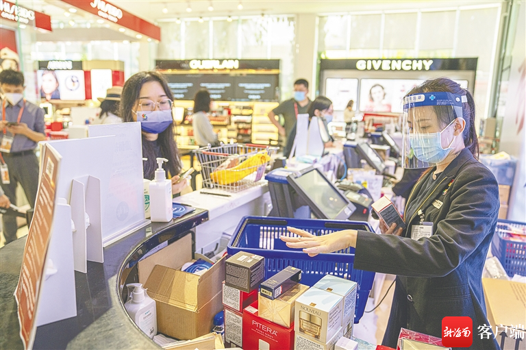 參加博鰲亞洲論壇2022年會年年會的嘉賓、媒體記者在博鰲免稅店選購商品。阮琛 攝