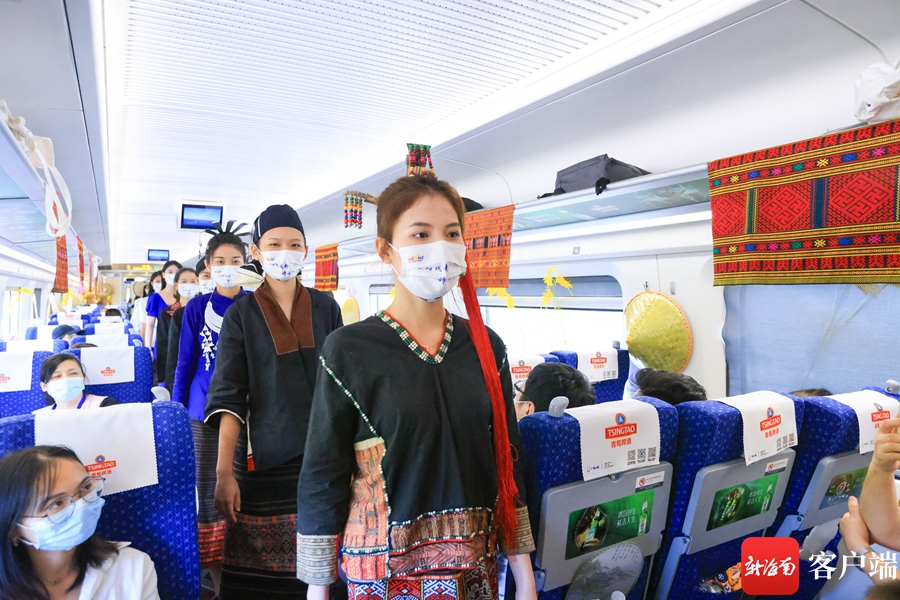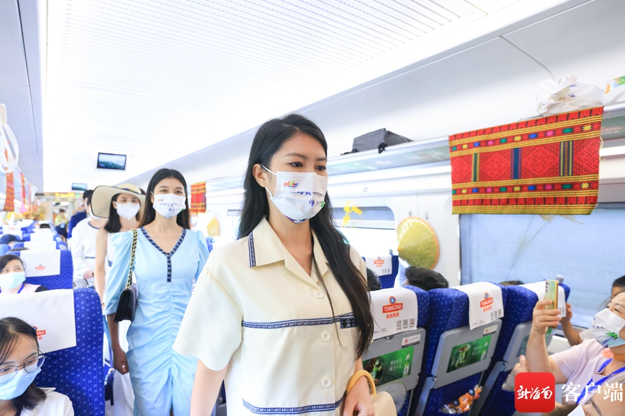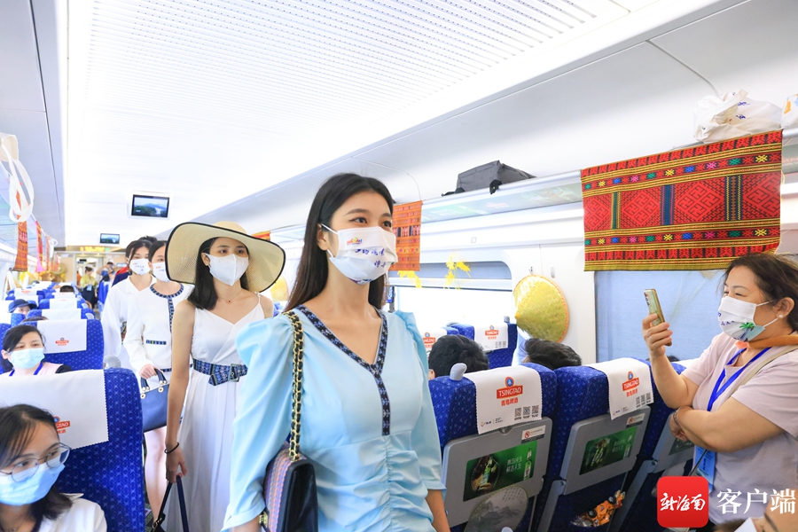 新海南客戶端、南海網、南國都市報6月1日消息(記者 韓星)在列車上看走秀是一種什么體驗?6月1日,“開往鄉野的列車”活動將黎族服飾特色走秀帶上車廂,模特們身穿著結合現代曲線美和黎族特色的服裝緩緩走出,與車廂里黎錦民俗、生態海洋、熱帶雨林的裝飾相融合,充分展示了人文理念與自然相融的美好景象。
