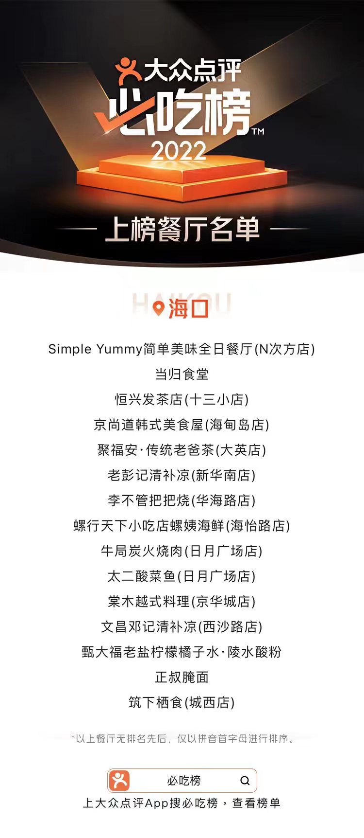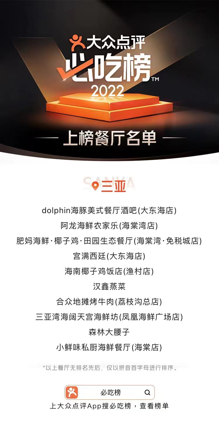 大眾點評發布2022年“必吃榜” 海南25家餐廳入選