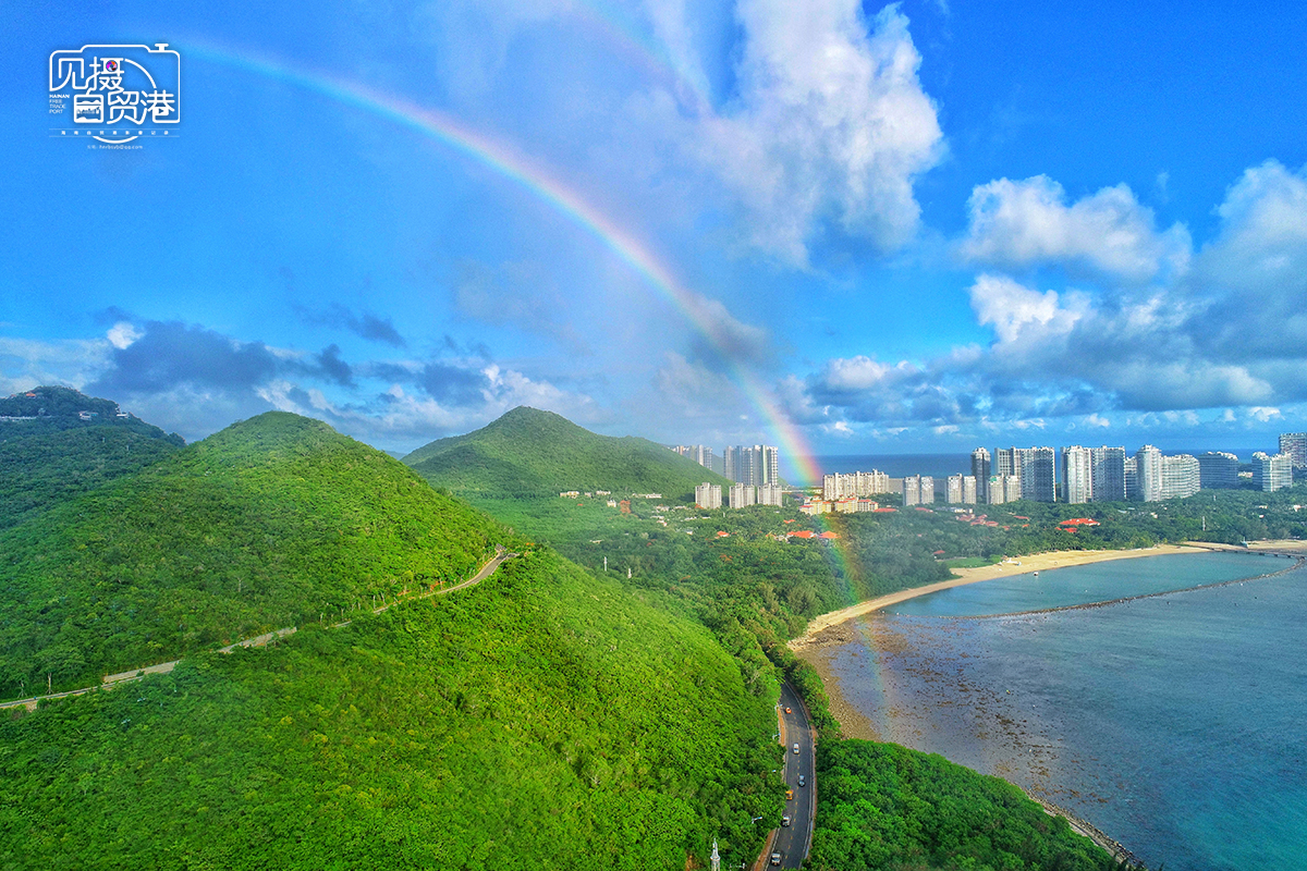 7月11日下午,遠眺三亞鹿回頭景區,一道彩虹出現,為海岸線增添一道別樣風景線。見習記者 王程龍 攝
