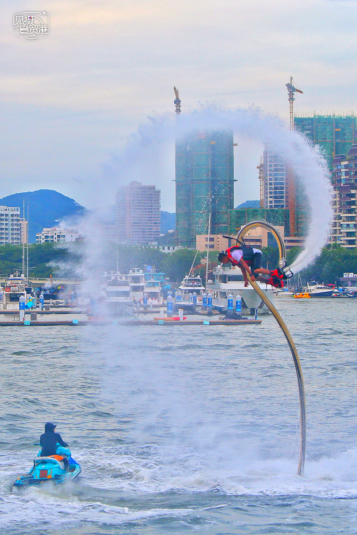7月7日下午,在三亞河入海口,游客體驗水上運動的刺激和快樂。 見習記者 王程龍 攝