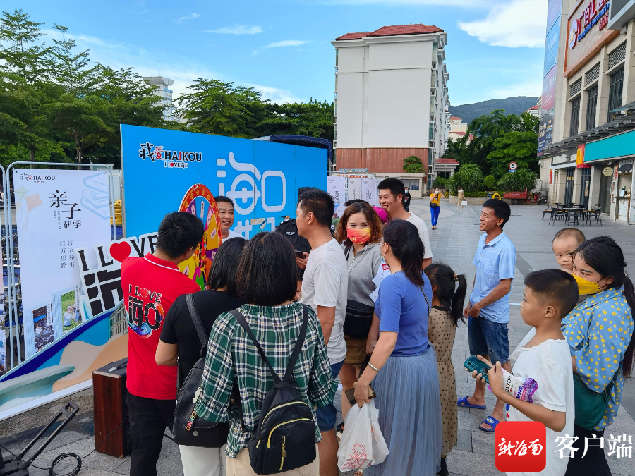 活動現場,文旅推介、地標打卡、歌舞表演、有獎問答、轉盤抽獎等組成了一張熱情洋溢的海口旅游邀請函,現場發放特色景區宣傳折頁、精品旅游路線推薦手冊,生動呈現海口鮮明的文化特色,優越的生態文化旅游資源,豐富的旅游娛樂業態,激發了大家把到海口旅游列入暑期計劃表當中,紛紛積極參與報名海口旅游產品。
