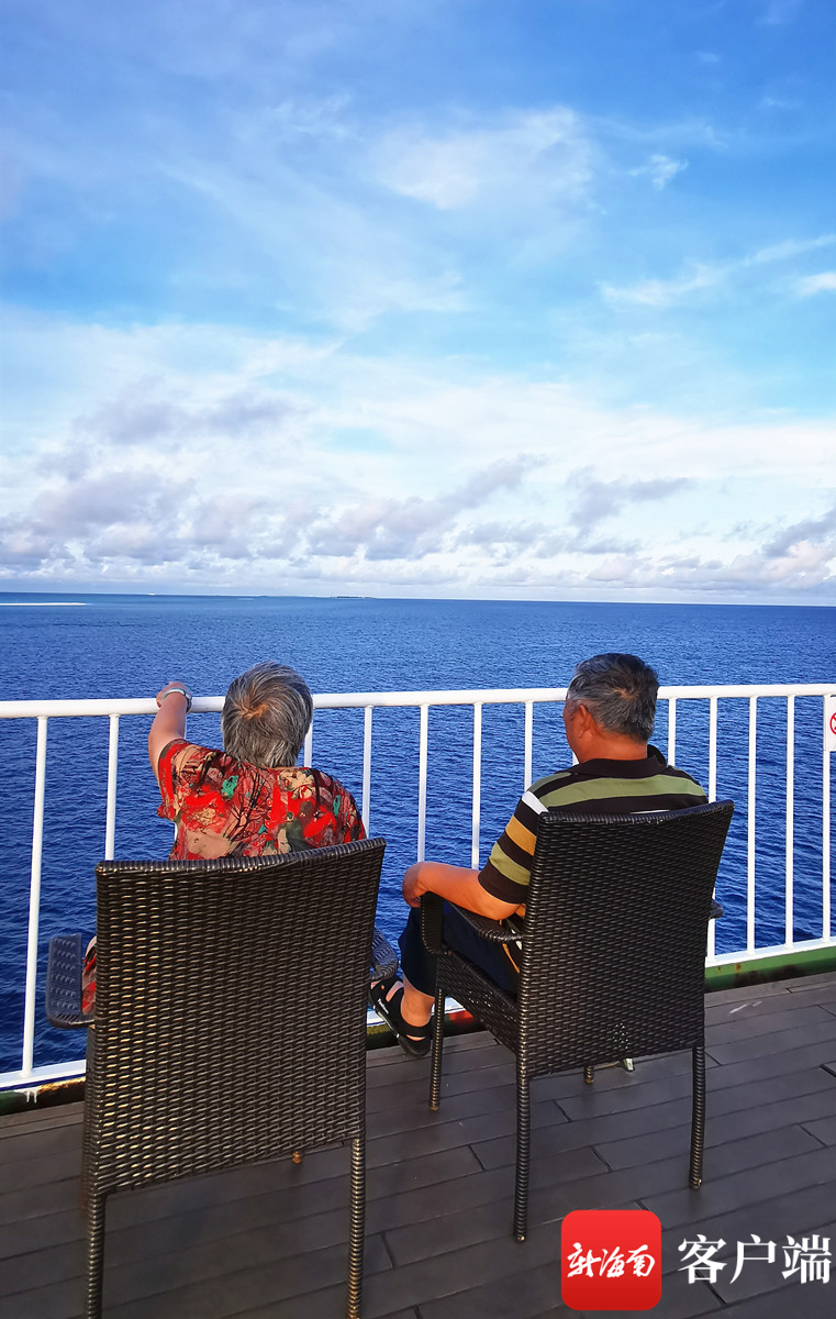 成都游客在“南海之夢(mèng)”輪上欣賞海上的風(fēng)景。