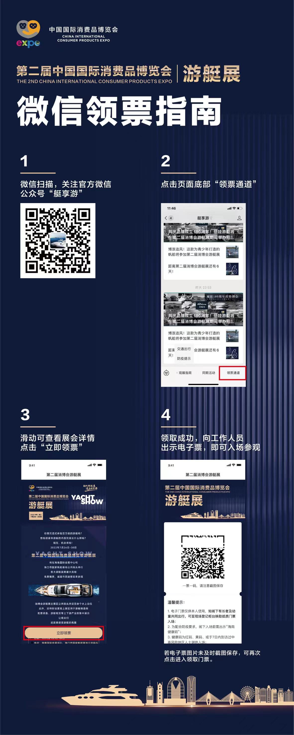 網上免費領取第二屆消博會游艇展門票指南→