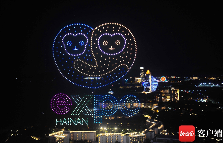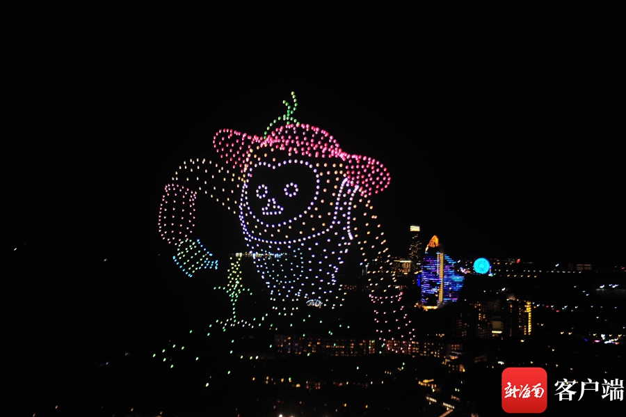 站在高處俯瞰,只見1000架無人機(jī)排兵布陣,準(zhǔn)備就緒隨后緩緩爬升,在上升到200米的高度后,無人機(jī)方陣“花樣”變陣,在空中描繪出多幅精彩的畫面。首先出現(xiàn)的是消博會logo,巨大的圖像浮在空中,象征著本屆消博會面積之廣,總面積10萬平方米,吸引了來自國內(nèi)外參展品牌2800余個。本屆消博會由商務(wù)部和海南省人民政府共同主辦,主題為“共享開放機(jī)遇,共創(chuàng)美好生活”,本屆消博會吉祥物以海南長臂猿為原型,形象寓意種業(yè)、深海、航天三大未來產(chǎn)業(yè)的發(fā)展在海南擁有天然的“長臂”優(yōu)勢,也象征著海南自貿(mào)港和消博會將張開雙臂,邀請國內(nèi)外各界共享發(fā)展機(jī)遇。