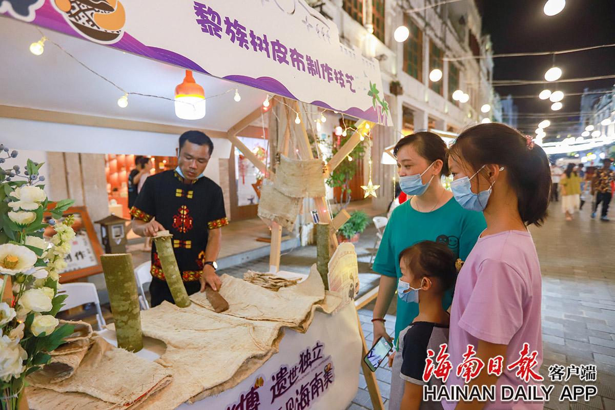 7月26日,“非”凡消博“遺”世獨(dú)立 讓世界看見海南美非遺特色展在海口龍華區(qū)騎樓老街舉行,市民游客參觀黎族樹皮布制作技藝。海南日?qǐng)?bào)見習(xí)記者 王程龍 攝