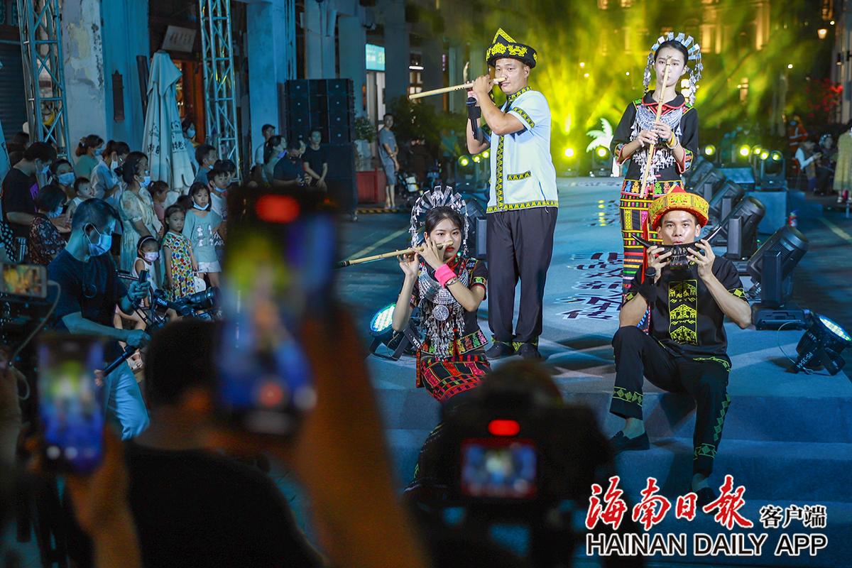 7月26日,“非”凡消博“遺”世獨(dú)立 讓世界看見海南美非遺特色展在海口龍華區(qū)騎樓老街舉行,表演者演奏各種黎族樂器。海南日?qǐng)?bào)見習(xí)記者 王程龍 攝