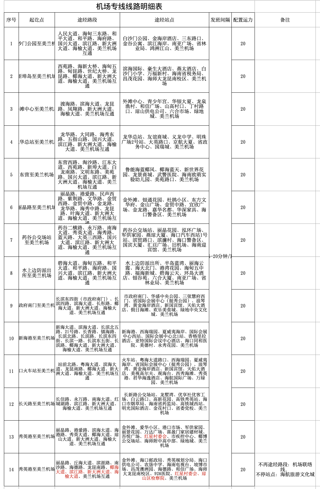 新海南客戶端、南海網(wǎng)、南國都市報8月22日消息(記者 王小暢)8月21日,海口市交通運輸和航港管理局發(fā)布了《關(guān)于調(diào)整旅客赴美蘭國際機場公交保障措施的通告》。根據(jù)當前疫情防控形勢,為有序做好旅客返程工作,自2022年8月22日6時起,海口調(diào)整旅客赴美蘭國際機場(以下簡稱“機場”)公交保障措施。