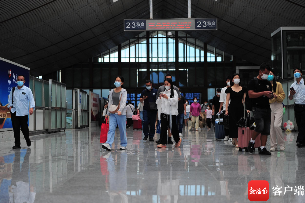 9月27日,乘客抵達三亞站。記者 沙曉峰攝