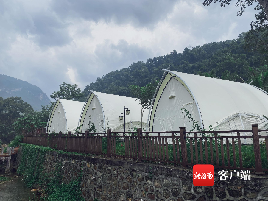 黎山麓營地是由王下鄉三派村合作社與云畫文旅公司共同設立,在村子游客中心搭建11頂帳篷。李海輝介紹,船型豪華帳融入海南黎族船型屋非遺文化,讓游客感受到少數民族的非遺魅力;星空帳篷頂部為透明的,游客可在屋內仰望星空,伴著夜色入眠。