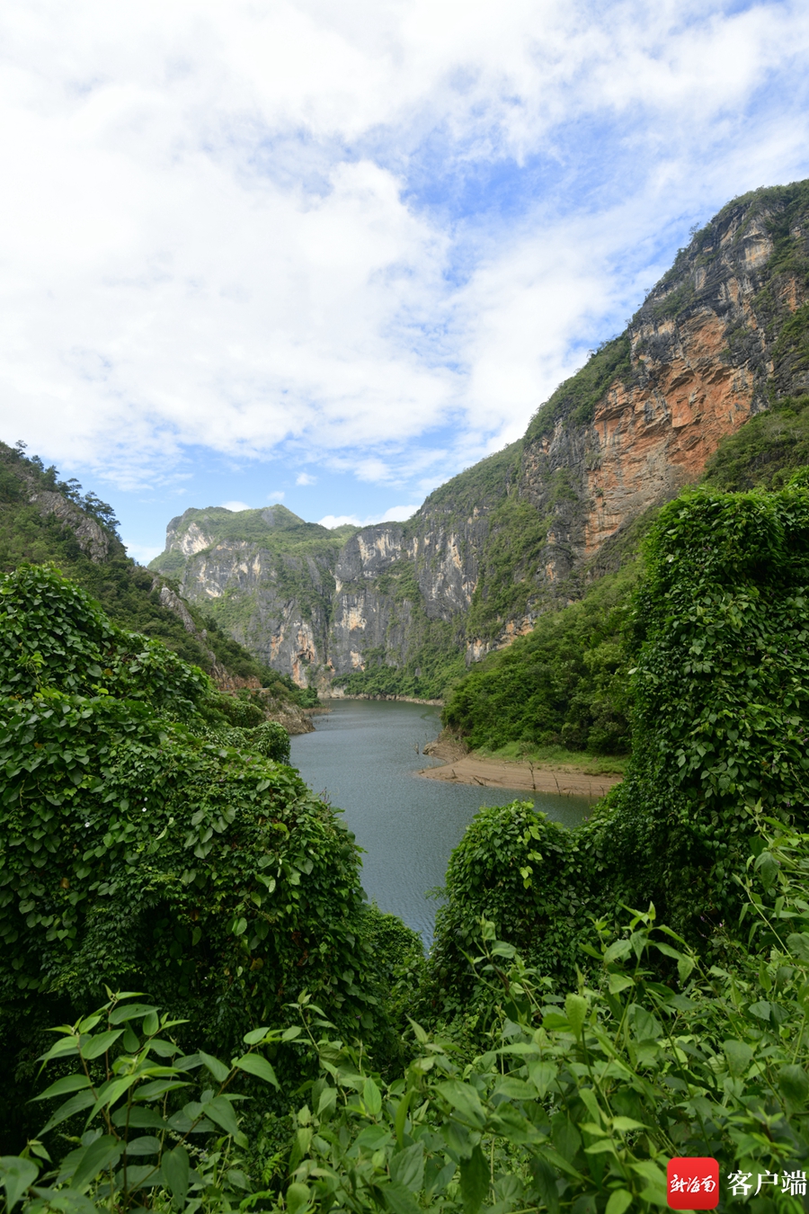 “十里畫廊”位于南堯河上,從牙迫村往西,連綿五公里,山體石灰?guī)r長(zhǎng)期受到雨水的沖刷和腐蝕,形成了陡峭垂直的峭壁,峭壁其表面自然形成千奇百怪的黑、紅、青等多種顏色的圖案,這些圖案千姿百態(tài),如鬼斧神工一般。更像一幅水墨山水長(zhǎng)卷,因此被人們稱為“十里畫廊”。這是海南少有的喀斯特地貌,經(jīng)過千百年風(fēng)雨與時(shí)間,共同創(chuàng)造出這幅江山如畫的作品。
