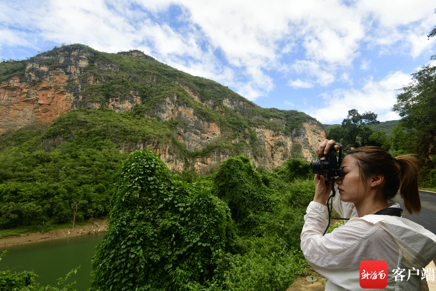 2022年“走進(jìn)國(guó)家公園 探訪熱帶雨林”主題采訪團(tuán)的記者在昌江黎族自治縣王下鄉(xiāng)拍攝“十里畫廊”。記者 陳衛(wèi)東攝
