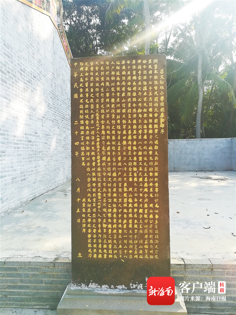 昌文湖村的“昌文初級(jí)小學(xué)校校產(chǎn)勒碑序”碑。王冬梅 攝