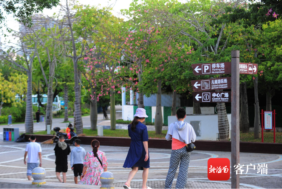 11月15日,三亞,游客從盛開的異木棉花下走過。記者 沙曉峰攝