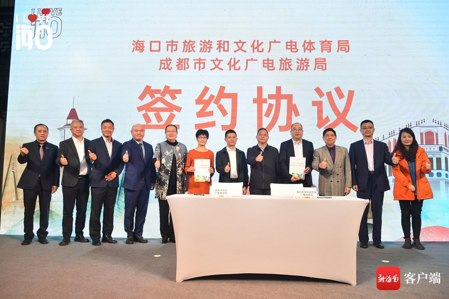 交流會現場,??谑新梦木趾统啥际形膹V旅局共同就海口和成都兩地旅游發展及游客互送簽署合作協議。同時,開啟了2023椰來蓉往春季游客互送計劃。