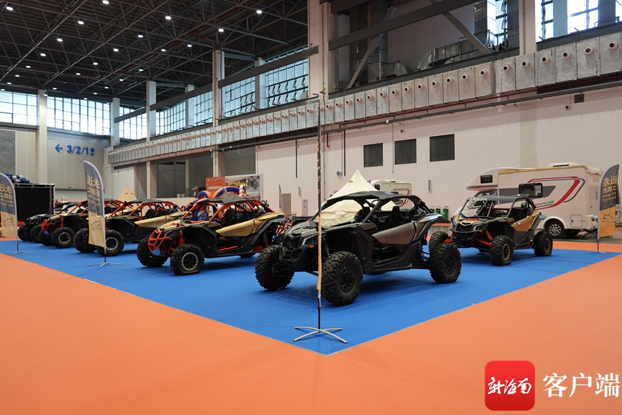 旅游裝備展現場,更有上汽集團房車生活家、德國戴德隆翠房車、青島遠東游艇、海南科達雅游艇、Stingray美國知名運動快艇、日本雅馬哈摩托艇、賽格威全地形車、龐巴迪全地形車、廈門飛越者、圣東旅居、東珠集成房屋、露云娜美、途野露營裝備、騰鷹戶外、樣兒戶外等高新潮酷旅游裝備亮相。