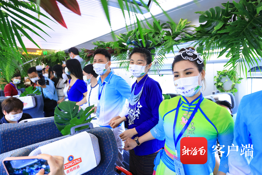 活動多場景植入海南鄉(xiāng)村旅游資源、地緣文化,展示海南的特色旅游、民俗文化、風味美食和旅游產(chǎn)品,“曬”出海南美麗鄉(xiāng)村掠影。列車車廂內(nèi),海洋、雨林、黎錦三大不同主題的置景引人入勝,熱帶水果、綠植、黎錦等裝飾物,營造鄉(xiāng)村旅游氛圍,助力游客提升旅游體驗。