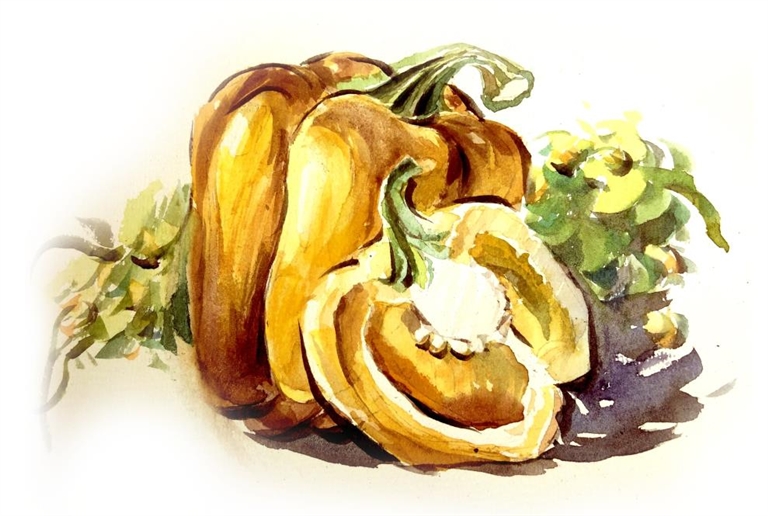 海南辣椒的常見品種:黃燈籠椒、朝天椒、泡椒、甜椒、尖椒、海南黃燈籠椒。吳源 繪