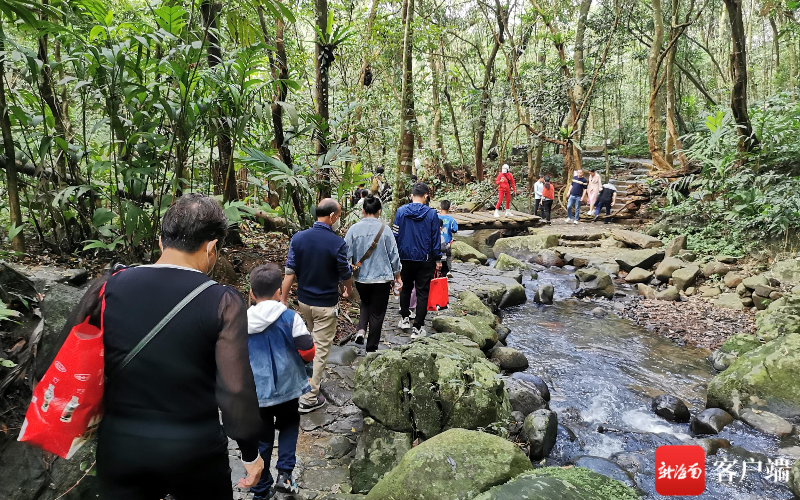 游客徒步探尋雨林秘境。記者石祖波 攝