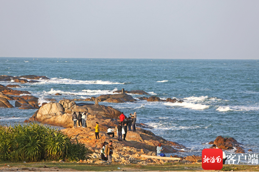木蘭灣慕名而來的市民在海邊玩耍,據悉今年正月初一到初六每天有上萬人次前來這里游玩。記者汪承賢攝