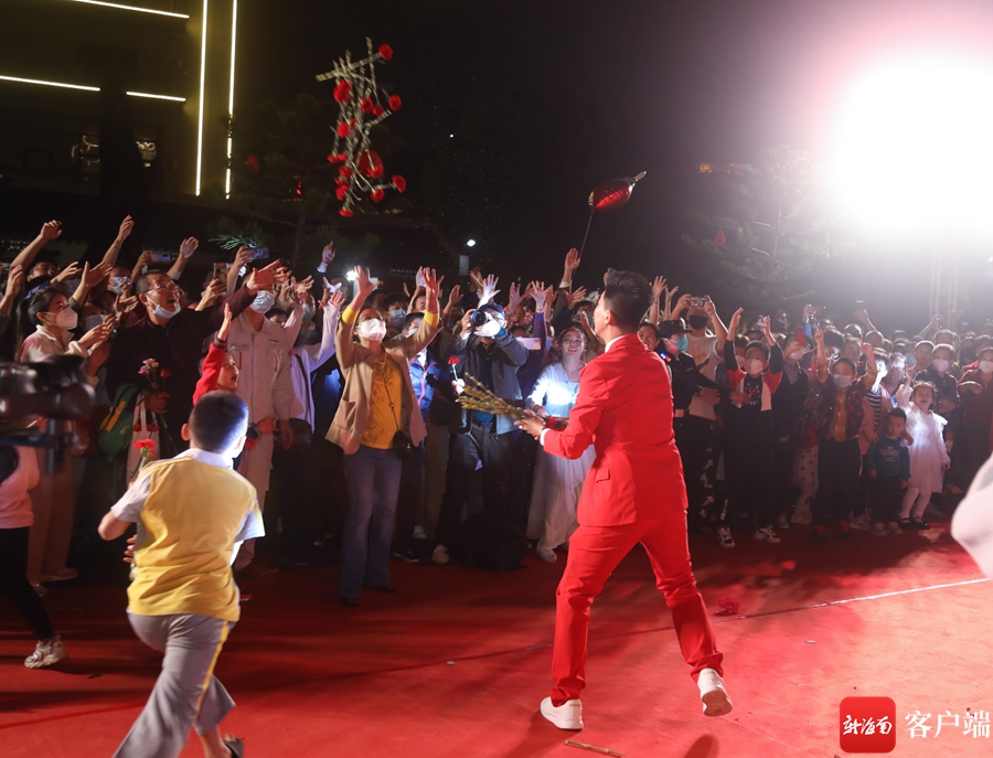 廣場(chǎng)換花舞表演間隙,主持人與市民游客熱鬧互動(dòng)。記者 姚皓 攝