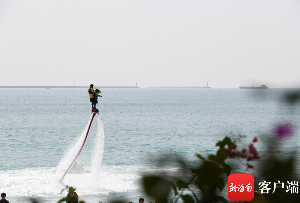 2月26日,游客在三亞大東海景區體驗海上娛樂項目。記者沙曉峰攝