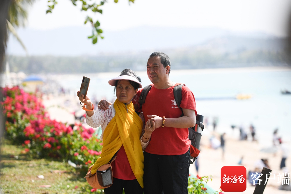 2月26日,游客在三亞大東海景區拍照打卡。記者沙曉峰攝