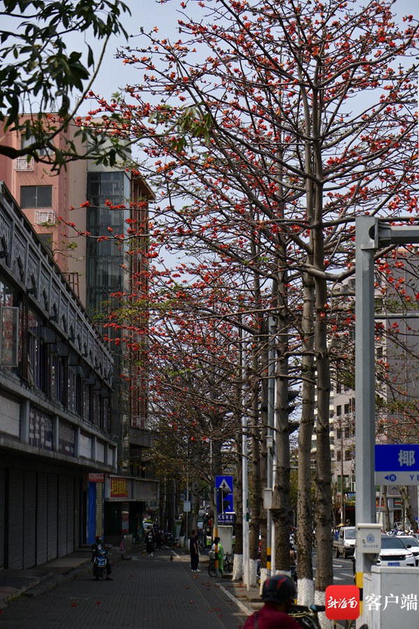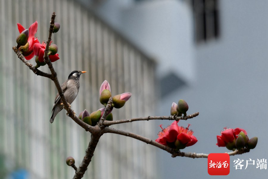 新海南客戶端、南海網、南國都市報3月8日消息 (記者 陳衛東)進入3月,海口市區的木棉花陸續盛開,其中最為集中的是五指山路。嬌艷的花朵同時引來一群群小鳥,它們在樹枝間忙來忙去找蜜吃,歡快的歌聲在木棉花間飄蕩。