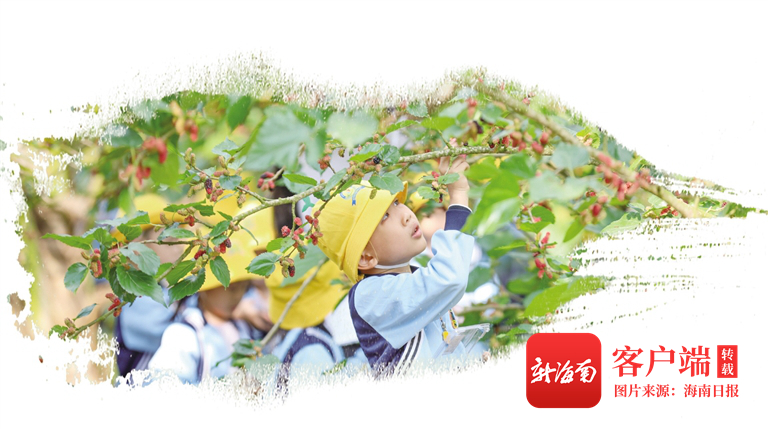 ?3月9日,在海口桂林洋國家熱帶農業公園,幼兒園小朋友采摘桑葚。 海南日報記者 李天平 攝