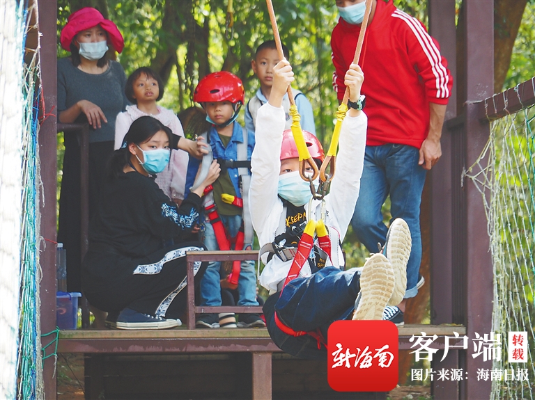 小朋友在儋州石花水洞體驗兒童滑索。(景區供圖)