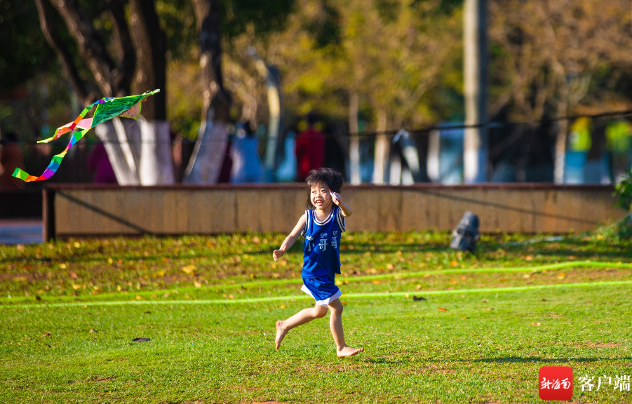 小朋友在萬綠園放風箏。新海南客戶端記者 李昊 攝