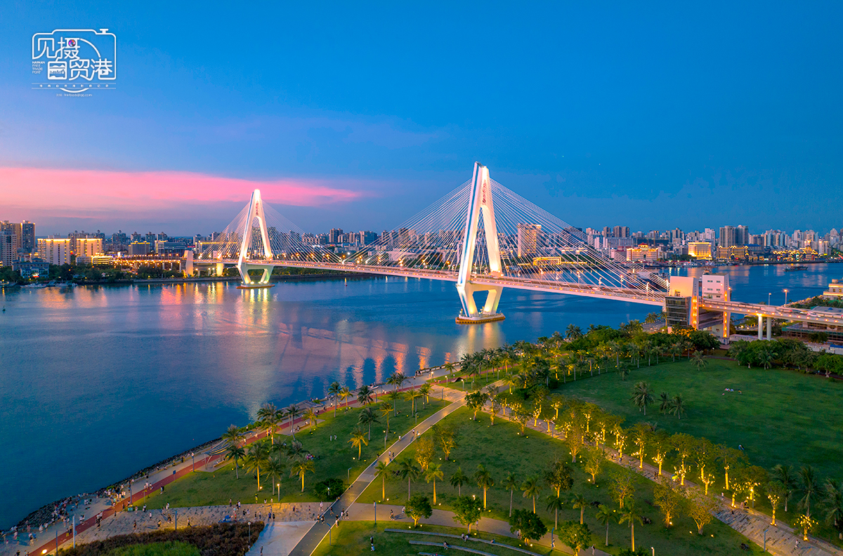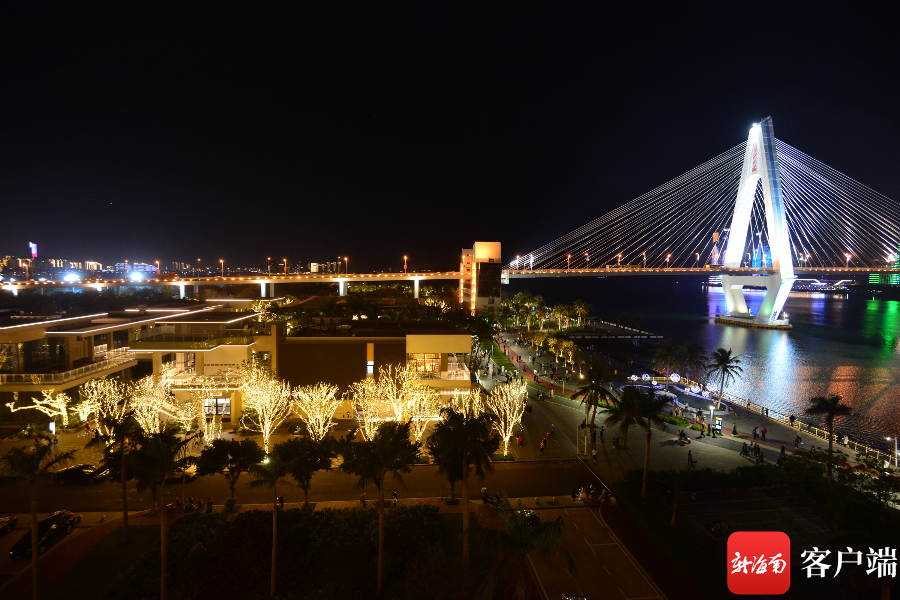 海口灣,椰樹與世紀大橋相互映襯,別有一番椰城韻味。新海南客戶端記者 李昊 攝