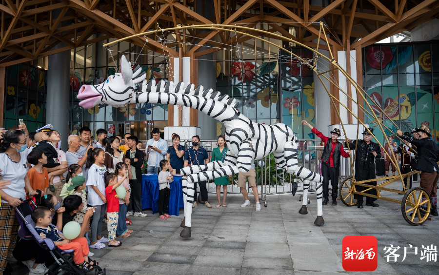 身長7米的“飛行家”朋克機械龍、集合“幻想生物+機械”設計元素的龍鳥、會彈鋼琴會跳舞的斑馬,可動性極強的巨型木偶犀牛……憨態可掬的動物們在“團長大人”的帶領下,海南首度引進的戲劇嘉年華重頭戲“巨型木偶大馬戲”亮相萬寧王府井國際免稅港。整場演出以“零距離”的趣味互動、酷炫的舞臺效果、震撼的視覺享受,為孩子們打造了一個天馬行空、“沉浸感”滿滿的童話世界,可供親子共同體驗的趣味項目也贏得了無數家長的青睞。